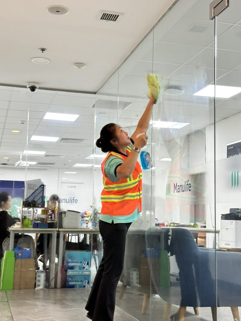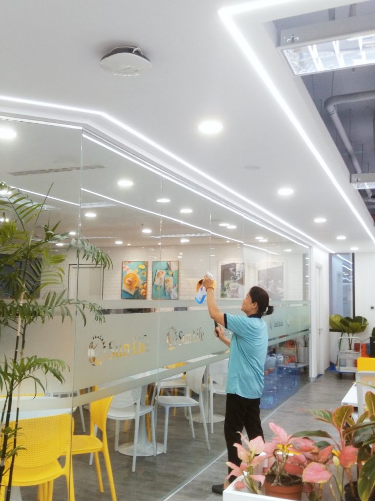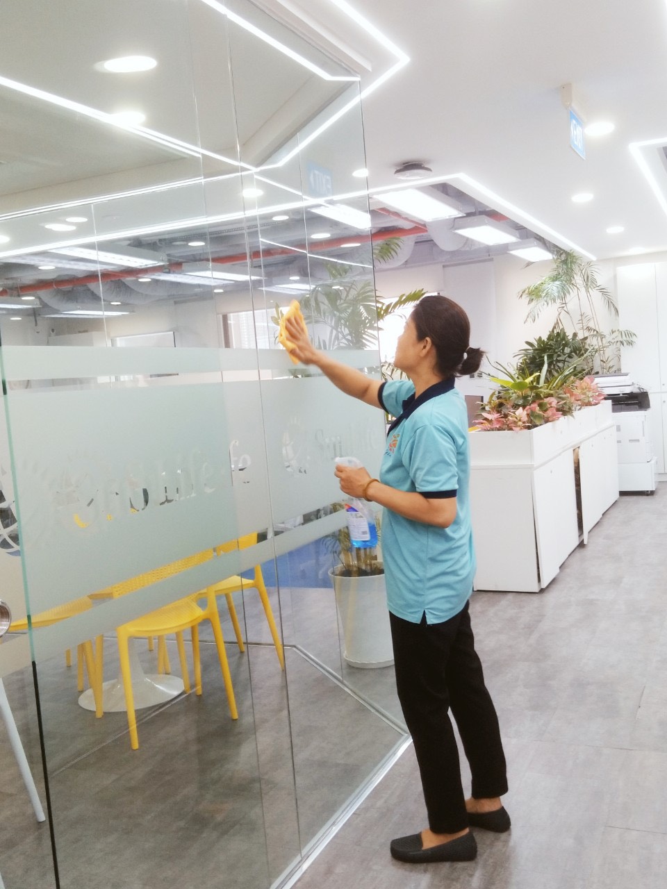 Ví dụ dễ thấy nhất như ở sảnh các trung tâm thương mại hay khách sạn lớn đều sẽ có nhân viên túc trực, cách vài tiếng sẽ vệ sinh kính 1 lần để đảm bảo kính luôn sạch và bóng.